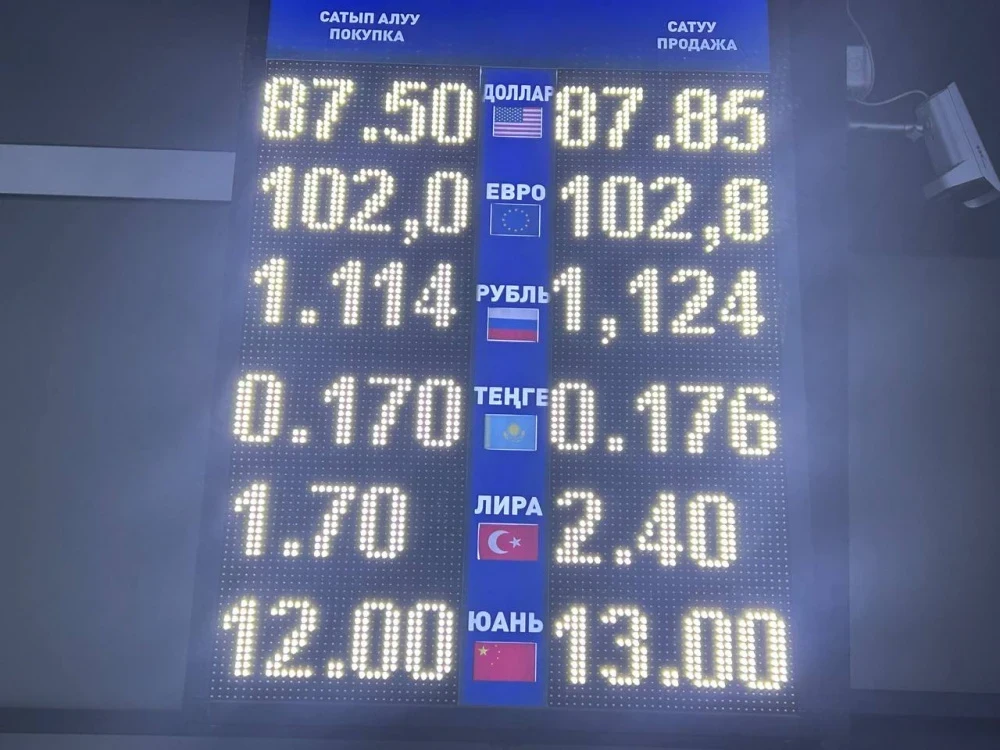Курс доллара остался прежним: его покупают по 87,5 сома, а продают по 87,85.