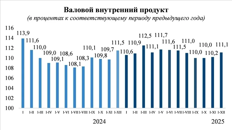 В соответствии с предварительными данными, валовой внутренний продукт Кыргызстана за период с января по декабрь 2025 года составил более 1,9 триллиона сомов. Это значение на 11,1 процента выше, чем в аналогичном периоде 2024 года. Об этом проинформировал Бактыбек Кудайбергенов, председатель Национального статистического комитета.