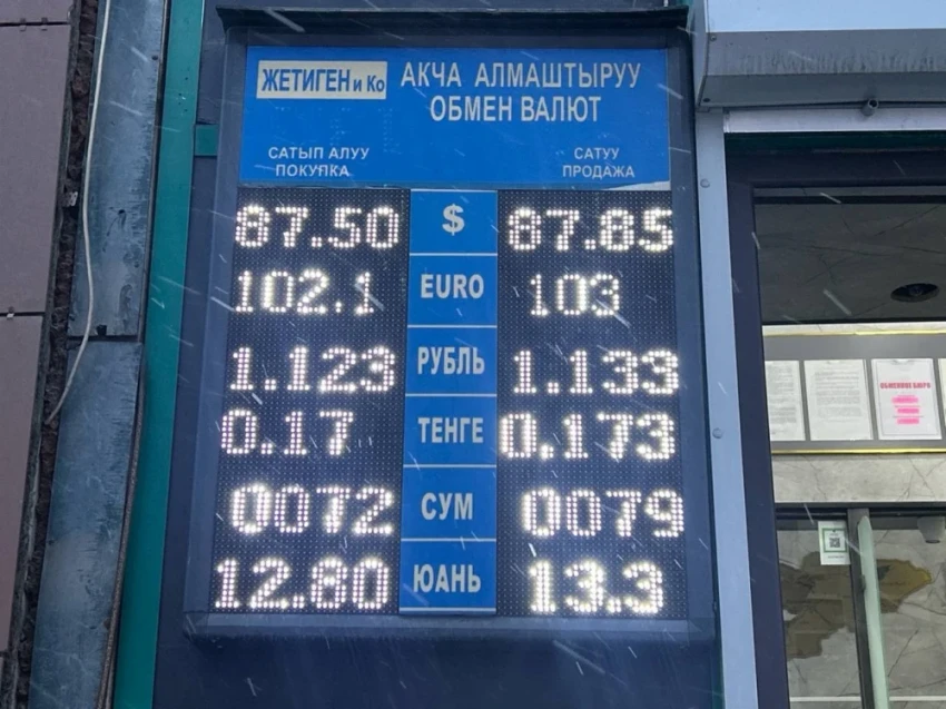 Рубль на покупку стоит 1,11-1,12 сома, а на продажу — 1,12-1,13.