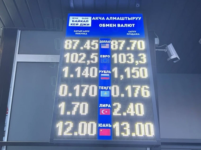 Рубль также немного подешевел: его цена при покупке составляет 1,13-1,14 сома, а при продаже - 1,14-1,15 сома.