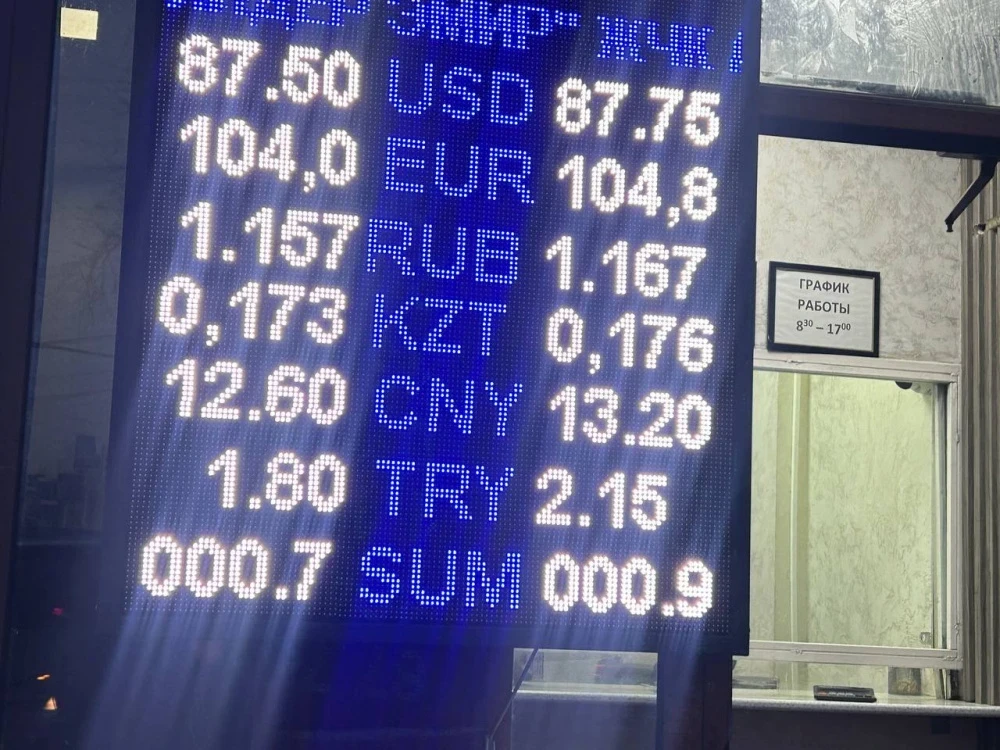 Курс доллара остался прежним: покупка осуществляется по 87,5 сома, а продажа — по 87,75.