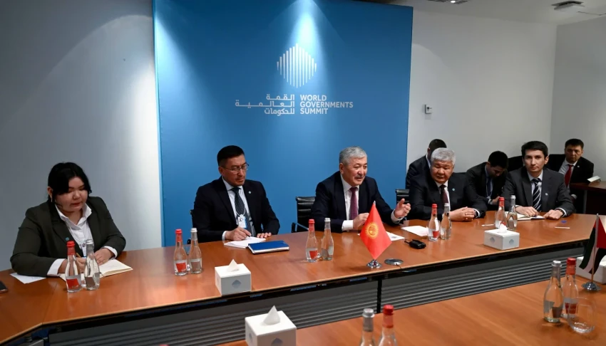 На Всемирном правительственном саммите председатель кабинета министров Кыргызстана Адылбек Касымалиев встретился с министром энергетики Объединенных Арабских Эмиратов Сухейлом Аль-Мазруи и генеральным директором компании Masdar Мохаммедом Жамиль Аль-Рамахи.