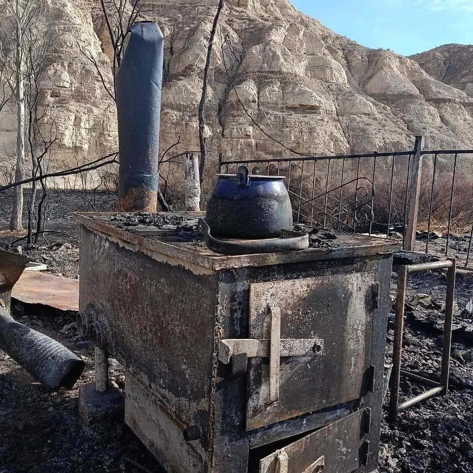 Предварительные данные свидетельствуют о том, что площадь пожара составила около 2 гектаров. В результате инцидента сгорели четыре юрты и два металлических торговых киоска, находившихся вдоль дороги.