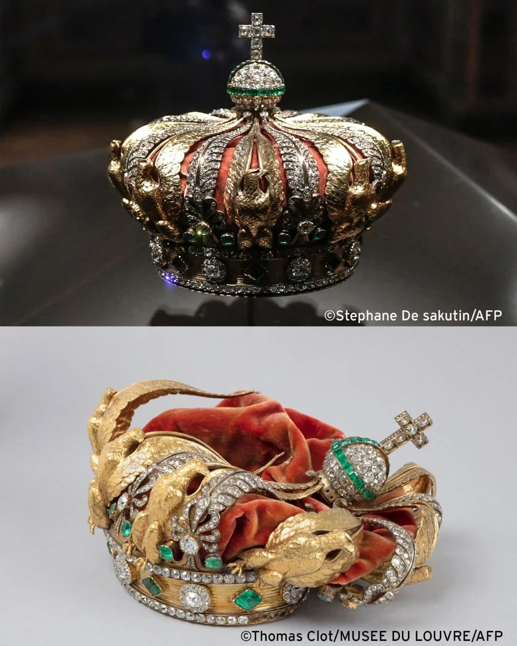 Венец, принадлежащий супруге Наполеона III, получил значительные повреждения: один из восьми золотых орлов отсутствует, а также пропало десять из 1354 бриллиантов. Однако все 56 изумрудов остались нетронутыми.