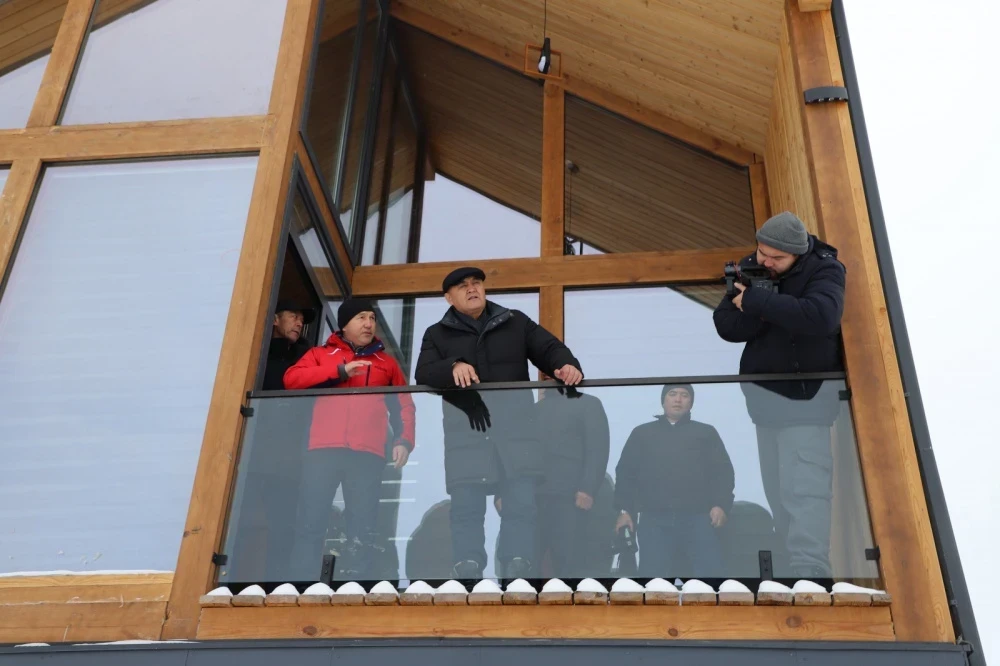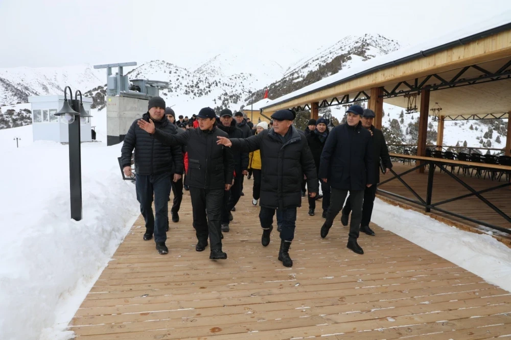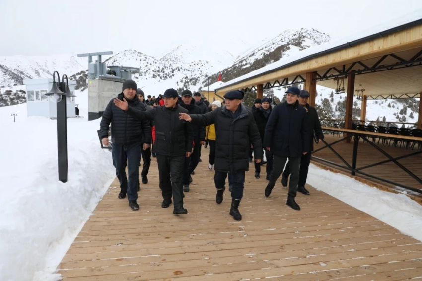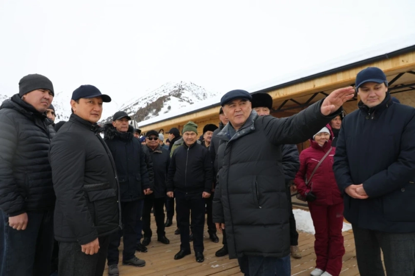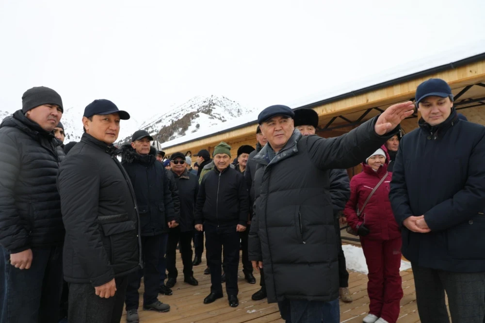 После завершения своей речи, Ташиев перерезал красную ленту и осмотрел территорию нового центра "Кызыл-Белес".