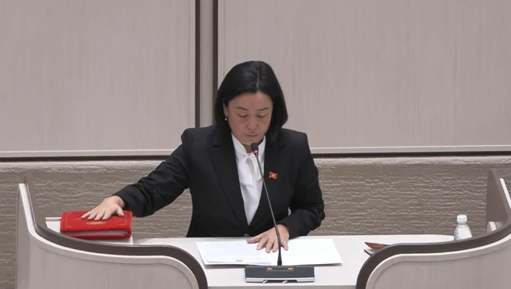 После вручения удостоверений и значков от главы ЦИК, новые депутаты принесли присягу.