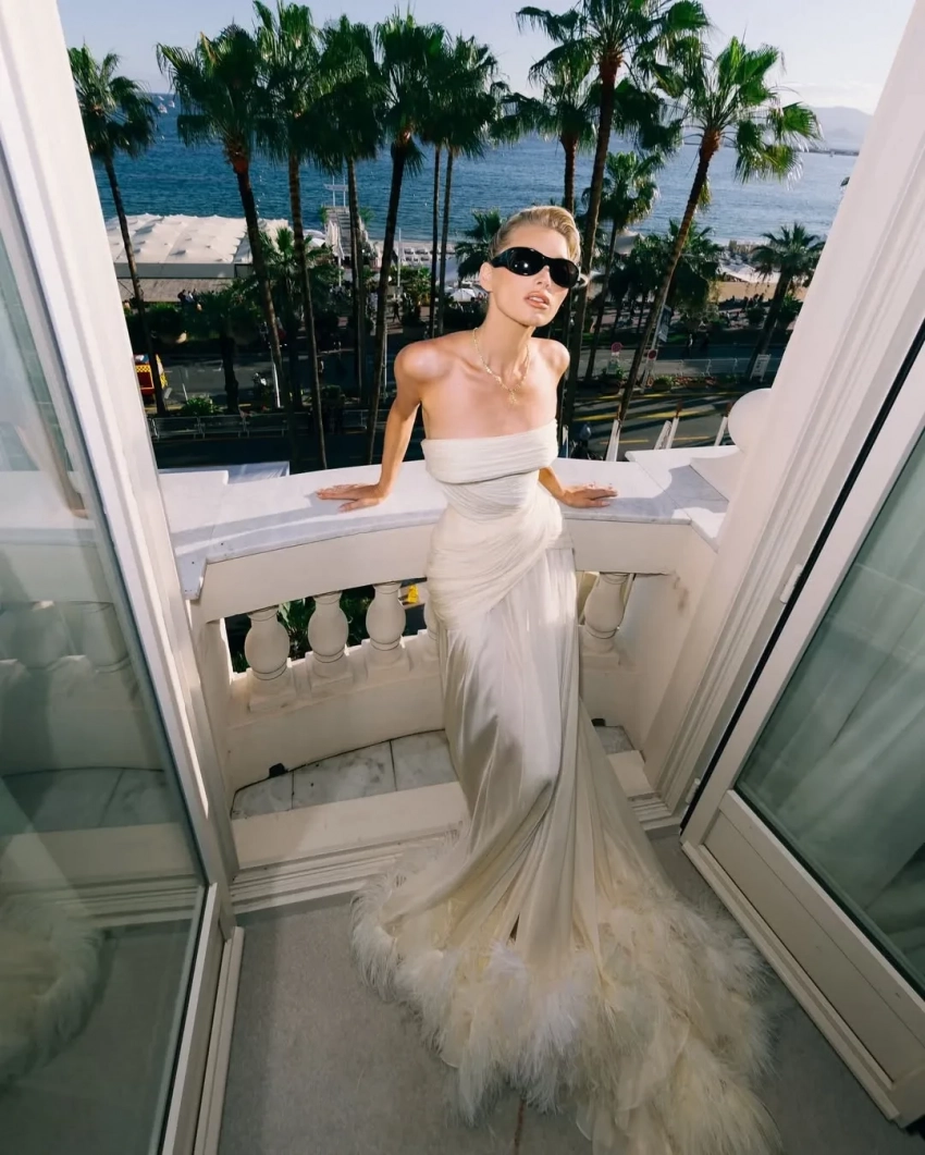 Кристен Стюарт в ChanelАмаль Клуни на премьере фильма "Боно: истории капитуляции" выгуляла винтажное платье John Galliano, а Карла Бруни в прямом смысле блистала на вечеринке Chopard в Vivienne Westwood. Барбара Палвин примерила образ настоящей принцессы в платье Balenciaga, а Наоми Кэмпбелл позировала на дорожке в Alaia. Следующий модный образ показала Изабель Юппер, которая надела кутюрное платье Balenciaga с массивным бриллиантовым "обвесом", а законодательница эстетики brat Charlie XCX тоже не стала пропускать самые модные вечеринки в Каннах и на одну из них пришла в лиловой комбинации и накидке Saint Laurent с перьями.