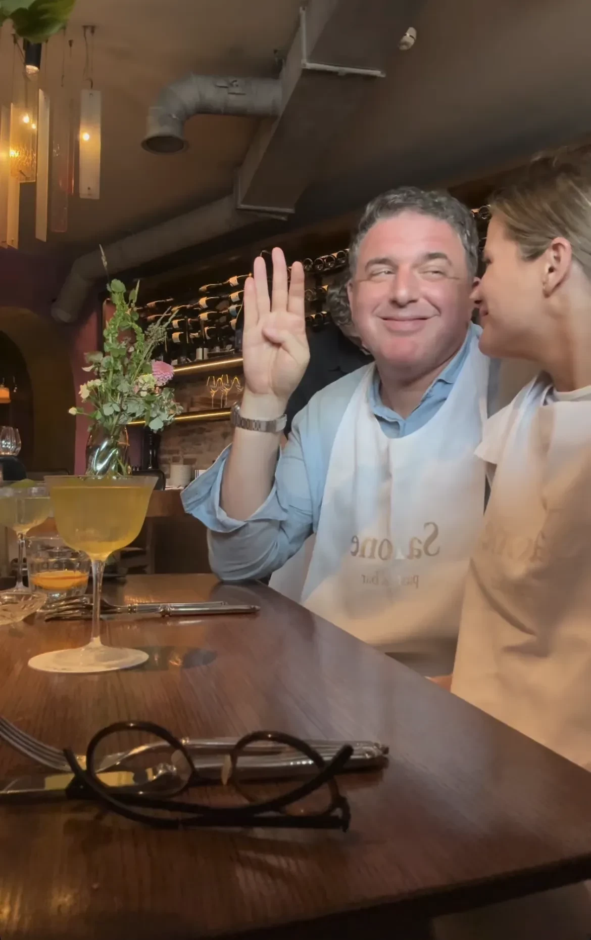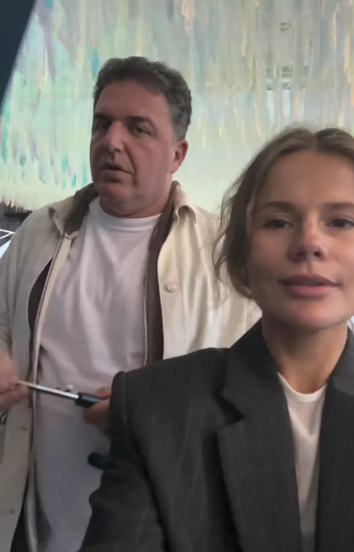 Максим Виторган (показывает международный жест о помощи) и Анна Короткова