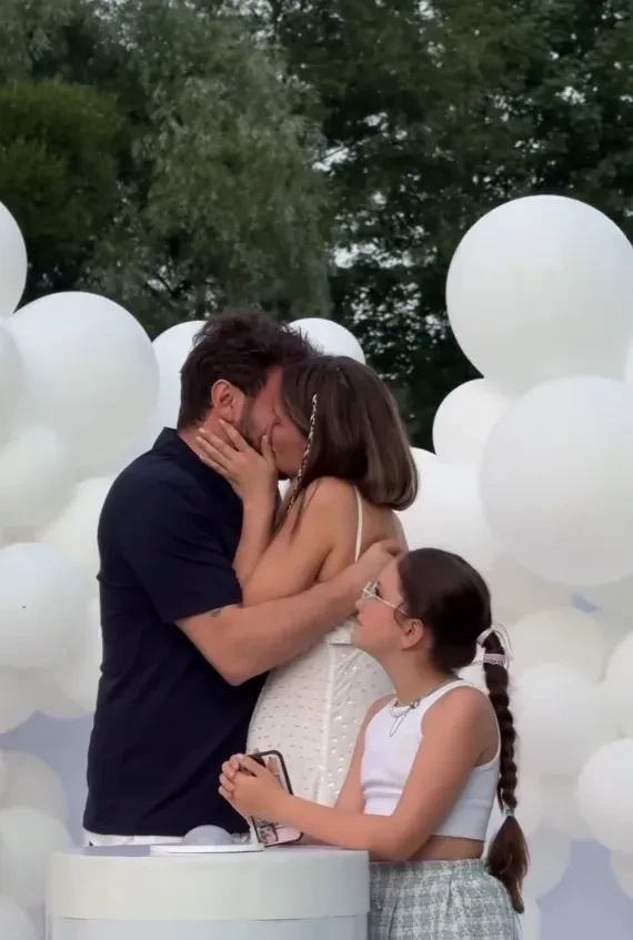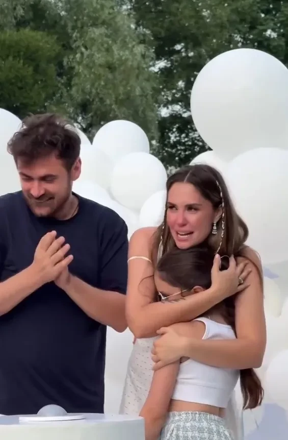 "Ждём тебя, наша малышка", — подписала Муцениеце видео, в котором после объявления пола ребёнка плачет и целует Дрангу и двух своих детей от первого брака, которые также присутствовали на вечеринке.