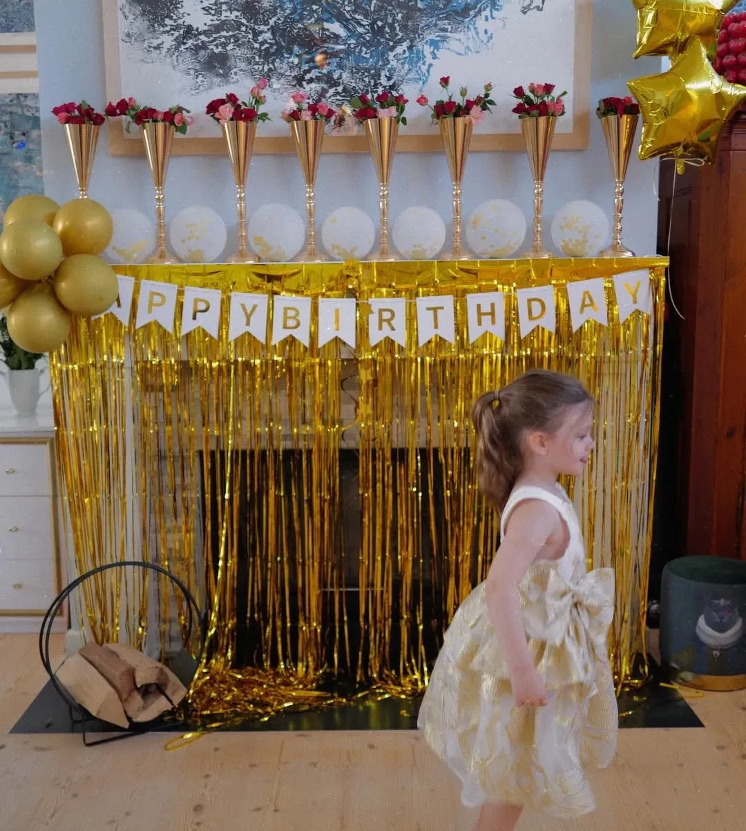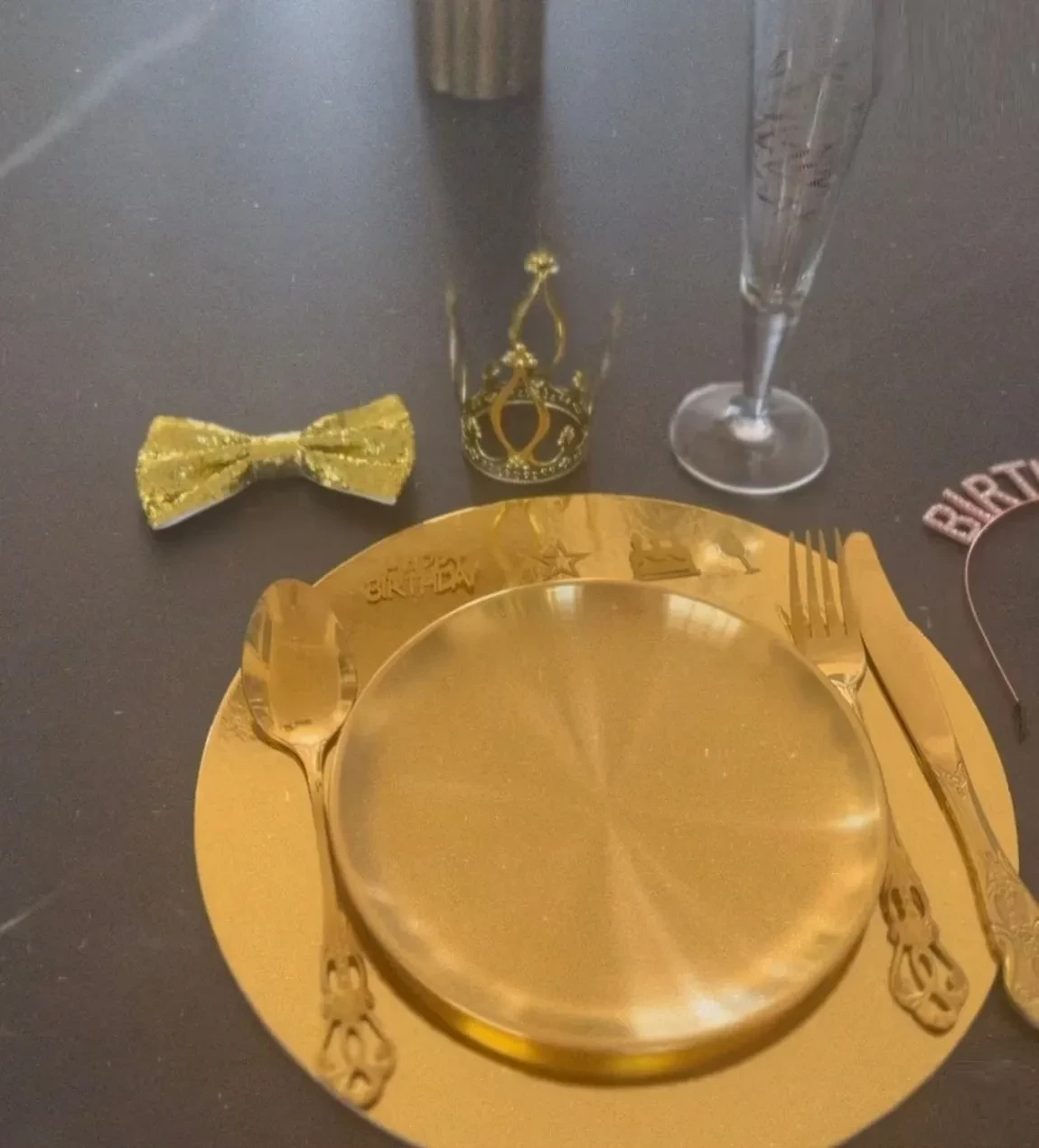 Перед гостями Узерли появилась в платье, имитирующем жидкое золото, в таком же стиле был украшен её дом. Гости праздника, среди которых были её родители, старшая сестра и двое детей, также были в нарядах с золотистыми пайетками.