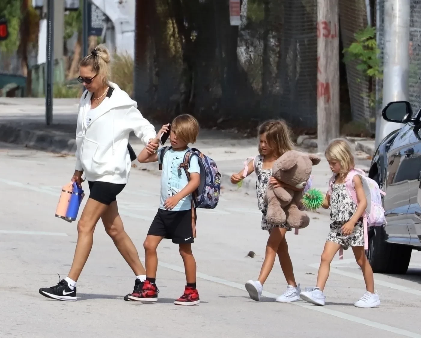 Папарацци засняли бывшую звезду тенниса в Майами, когда она отводила семилетних двойняшек Николаса и Люси и пятилетнюю дочь Машу на тренировку по карате. Анна была одета в объёмную толстовку и короткие шорты и переходила улицу, держа сына за руку, пока тот говорил или слушал что-то в телефоне. Дети селебрити тоже были одеты в спортивном стиле, а дочери и вовсе выбрали одинаковые костюмы.