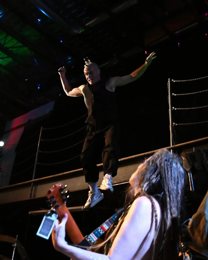 Зои Кравиц и Остин БатлерЧуть ранее съёмочная группа устроила перформанс в одном из баров города. Здесь играли музыканты, Кукушкин* устроил небольшое представление.