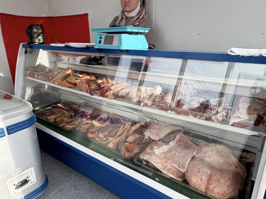 У входа на Ошский рынок открыли соцмагазин мяса по сниженным ценам