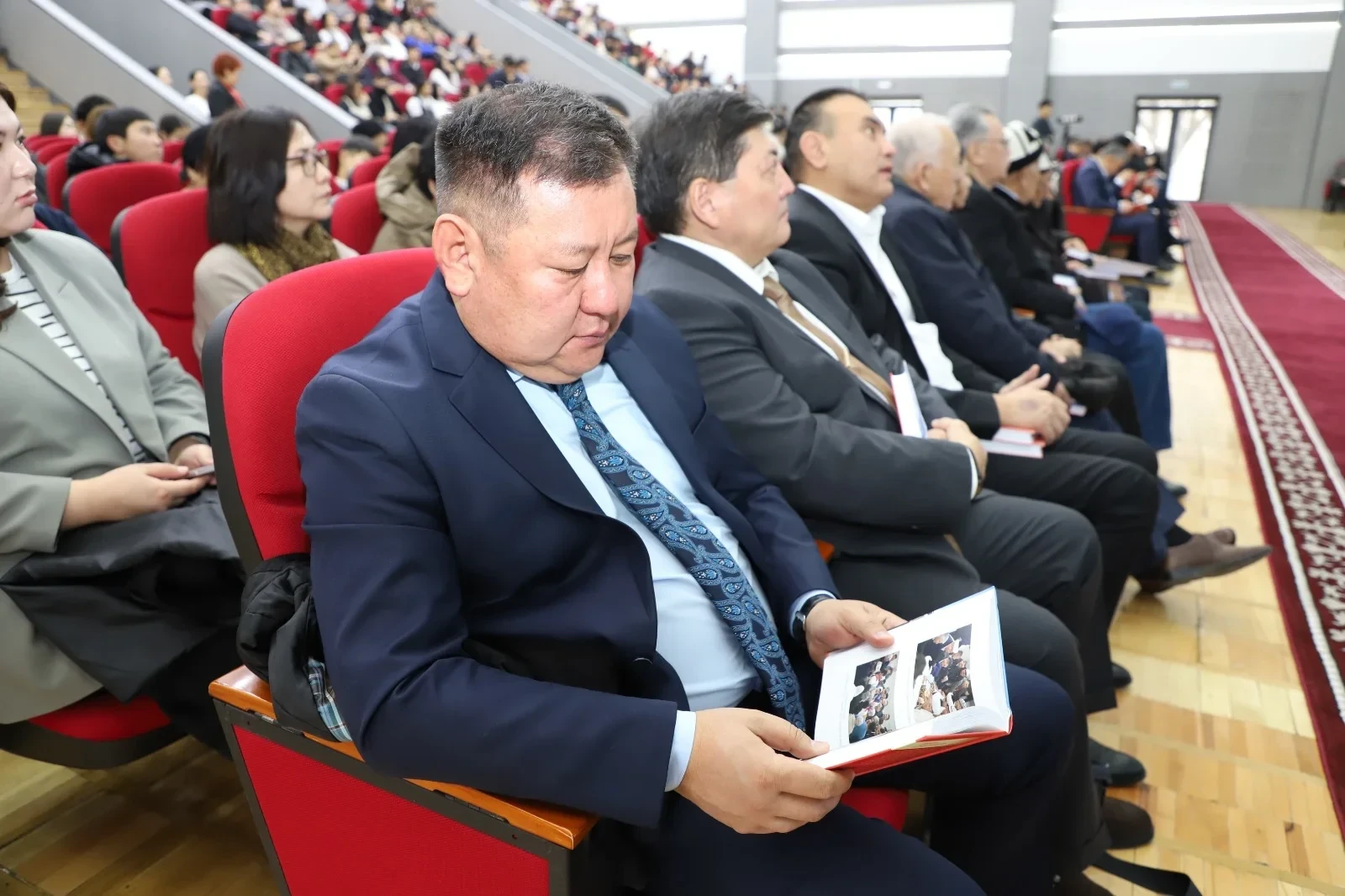 По информации Министерства просвещения, на мероприятии присутствовали такие важные лица, как государственный секретарь Арслан Койчиев, советник президента КР Марат Иманкулов, министр просвещения Догдуркуль Кендирбаева, а также академики и представители общественности.
