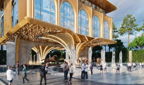 На уровне фонтанов будет построен современный многофункциональный комплекс, который объединит: