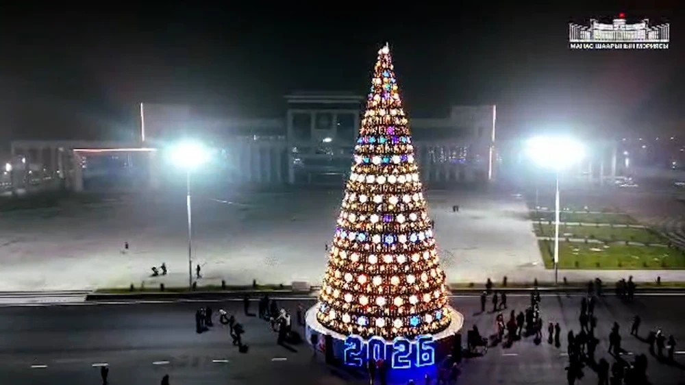 По описанию мэрии, "главная новогодняя елка Бишкека 2025 года выполнена в минималистичном стиле. Конструкция имеет традиционную конусную форму и покрыта плотным искусственным еловым материалом темно-зеленого цвета".