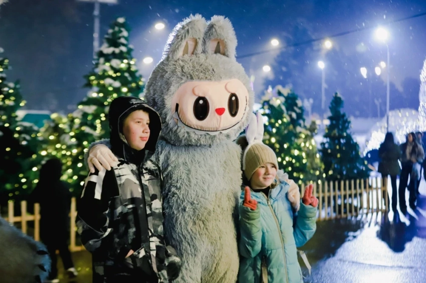 На площади установлены новогодние инсталляции, и желающие могут сделать фото с ростовыми куклами.