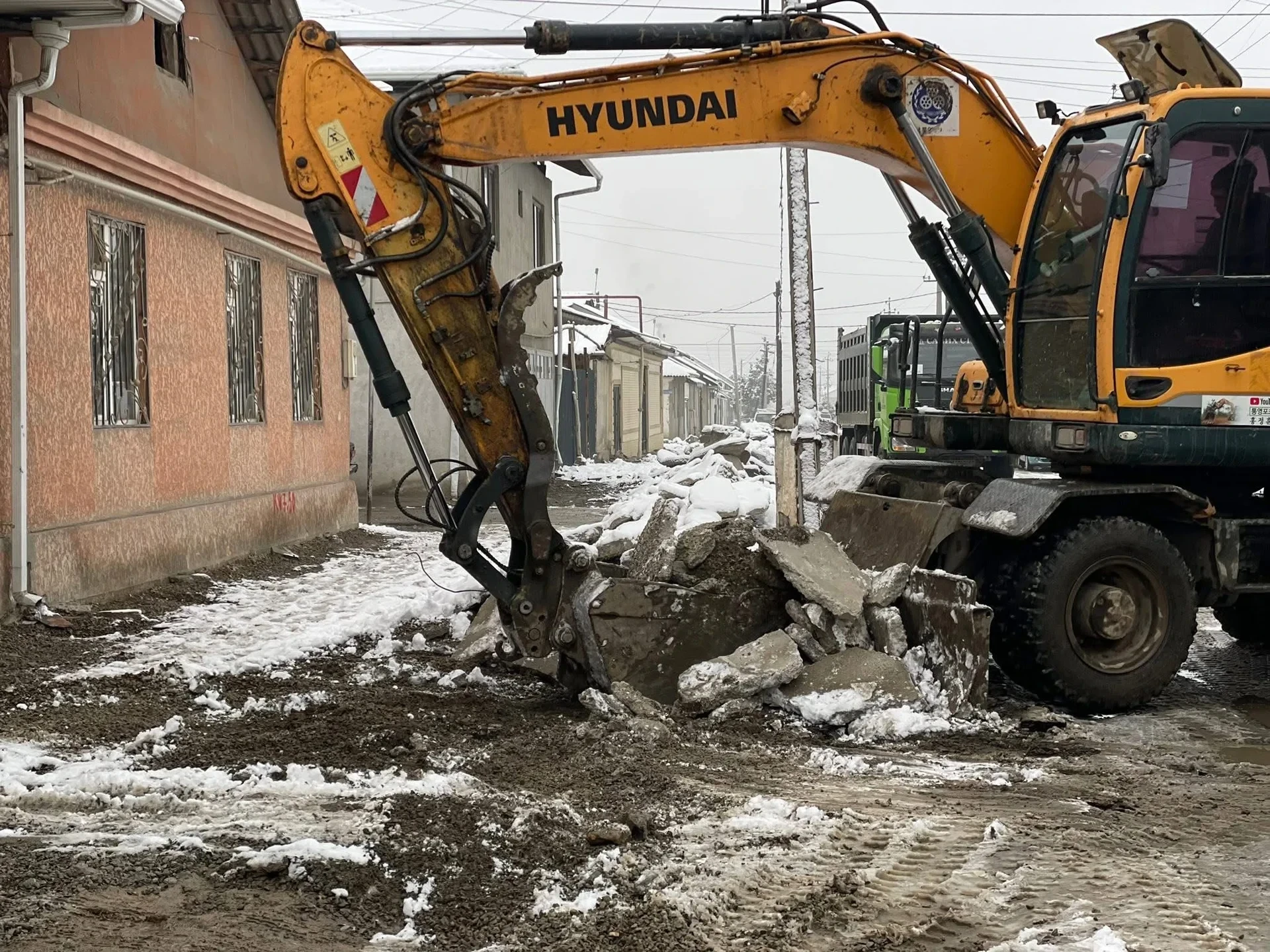 В городе Ош продолжаются работы по расширению улиц Санкт-Петербург и Абдувалиева, в ходе которых осуществляется очистка строительных отходов.