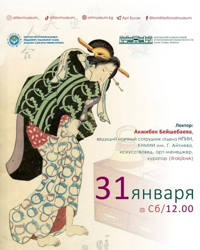 Тема лекции — искусство Японии, которую проведет искусствовед и арт-менеджер Акжибек Бейшебаева.