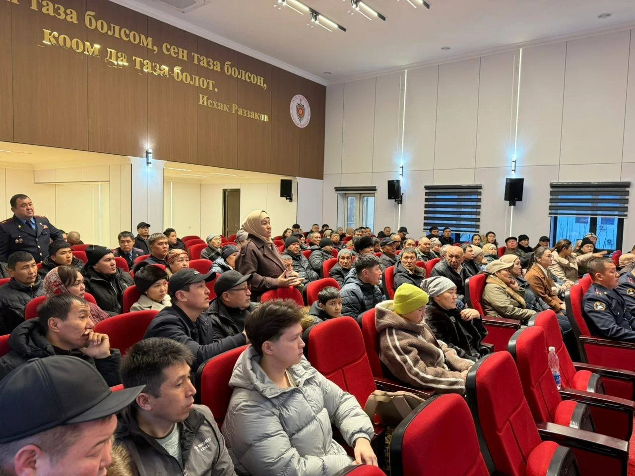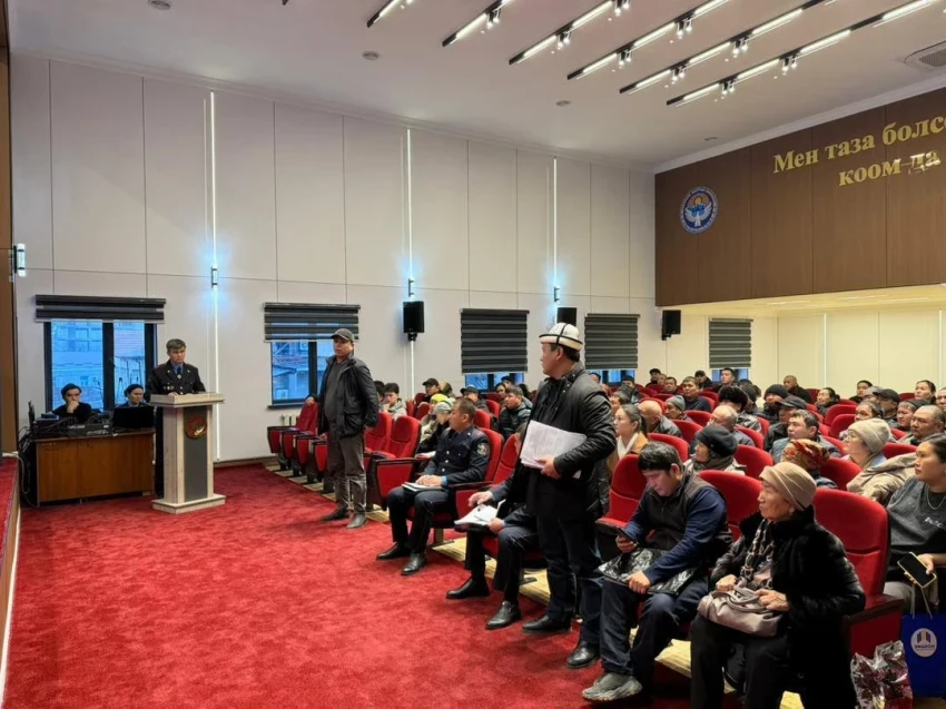 На встрече присутствовали начальник УВД города Дамир Исаков, сотрудники ведомства, а также бывший директор компании Эмилбек Жусупов. В общей сложности более 80 человек, пострадавших от ситуации, приняли участие в обсуждении.