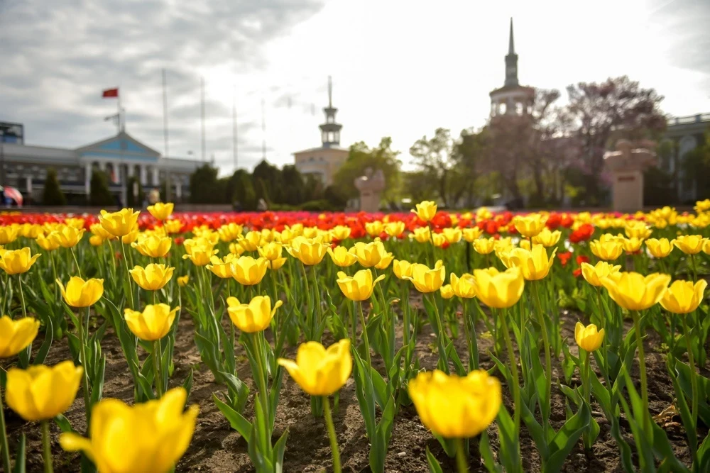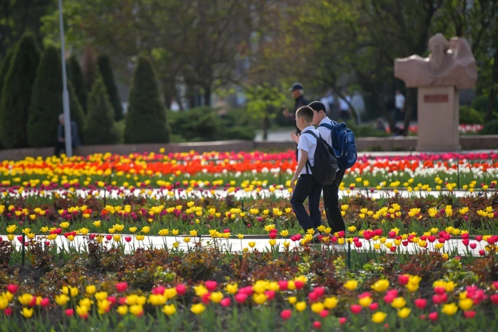 В Бишкеке - тюльпановое настроение. Цветочный фоторепортаж от мэрии