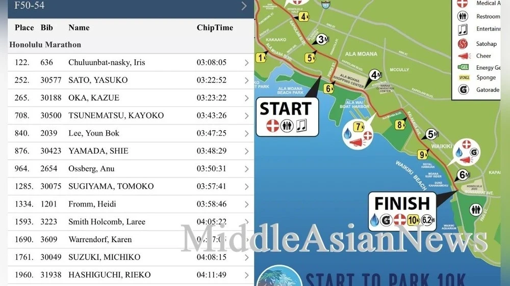 54-летняя монголка завоевала золотую медаль на Гонолулуском марафоне