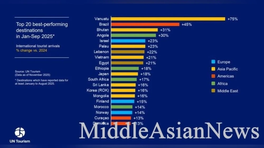 В Северной и Южной Америке отмечен рост на 2% до сентября 2025 года, с увеличением на 3% в первых двух кварталах, но с небольшим снижением на 1% в третьем квартале. В Ближнем Востоке число прибытий увеличилось на 2% по сравнению с аналогичным периодом 2024 года.