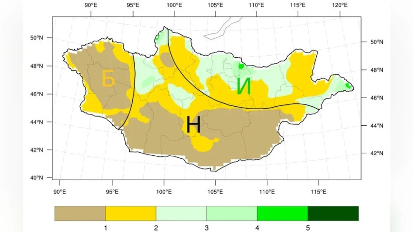 В Гоби средняя температура во многих аймаках, включая Дундговь, северную часть Дорноговь и Говьсумбэр, вероятно, будет ниже среднемноголетних значений, в то время как в других местах температура останется на уровне средних показателей. Уровень осадков в Говьсумбэр, как ожидается, будет выше среднего, в то время как в остальных районах нормальные значения.